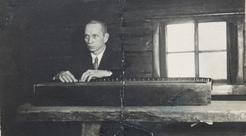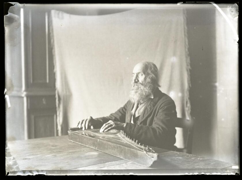Teppana Jänis from Suistamo plays the Kantele on 3 June 1921. The Finnish Heritage Agency, Ethnographical Picture Collection, finna.fi.