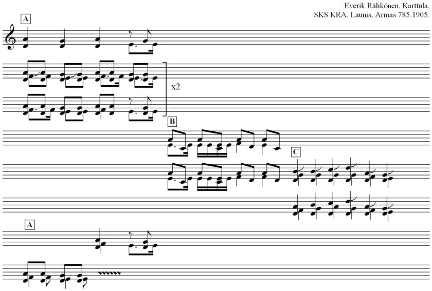 Example 1. Armas Launis’s manuscript from Everik Rähkönen’s Church Bells. SKS KRA, Launis, Armas 785. 1905.