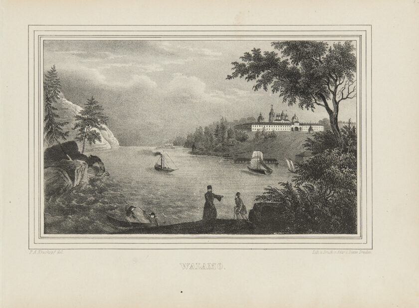 Valamo. Pehr Adolf Kruskopf, 1845-1852. Litograph. The Finnish Heritage Agency, Historical Picture Collection, finna.fi.