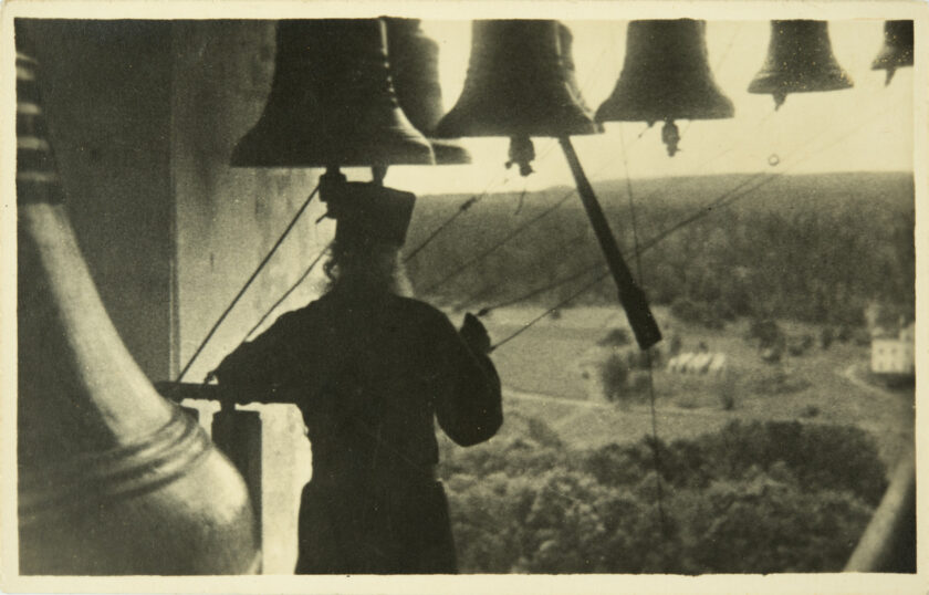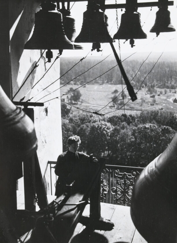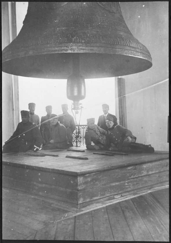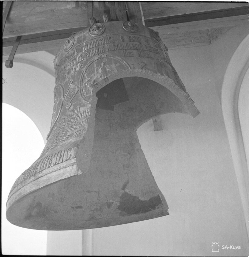 The bell of Apostle Andrew in the tower of the Valamo Monastery church during the Continuation War in 1942. Photo: M. Aaltonen. War Museum, finna.fi.